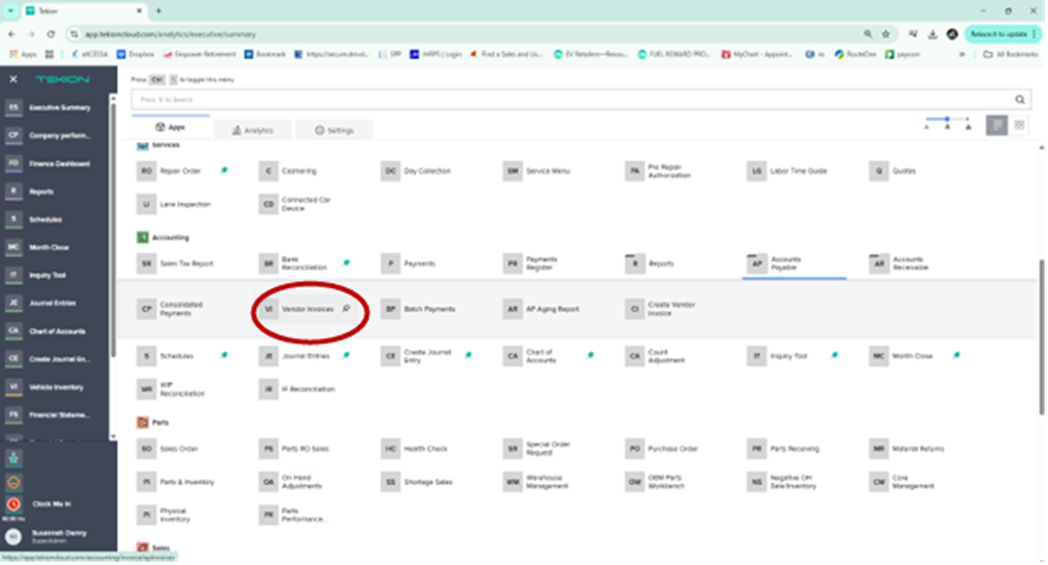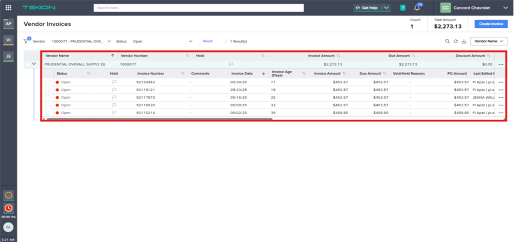 Search in Tekion using the vendor's name and invoice number. Confirm the invoice has not already been posted in the system.